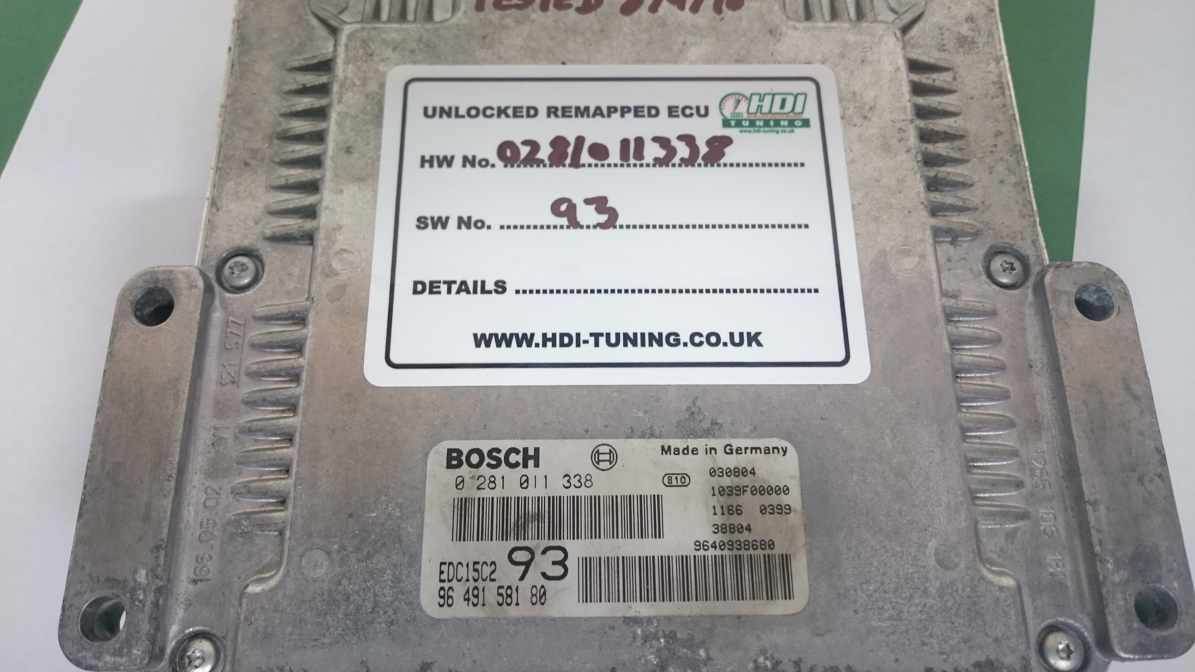 EDC15C2 Unlocked ECU 0281011338 Peugeot 406 2.0 HDI 8V 110 BHP